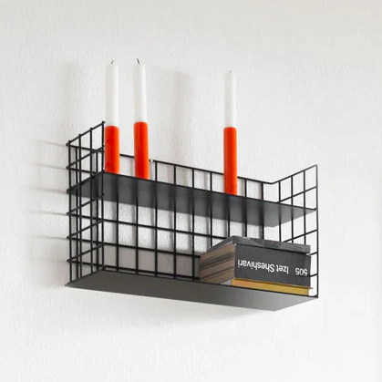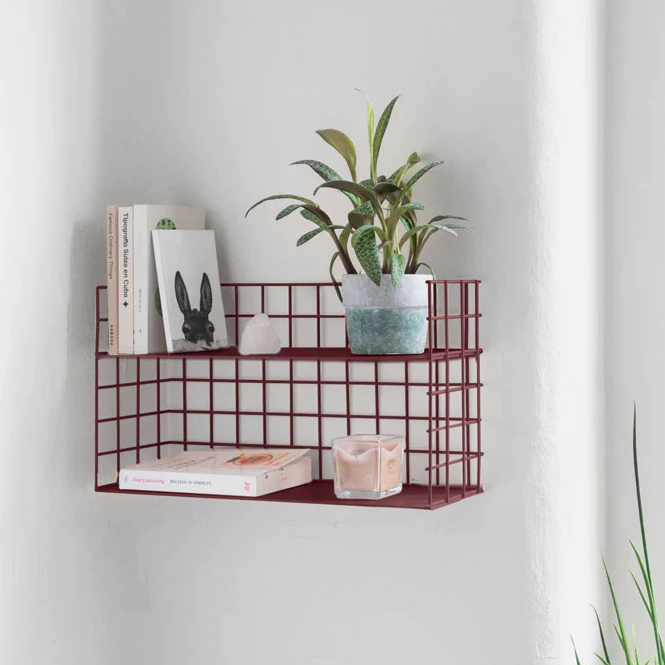 - Estante de pared con estructura de malla metálica