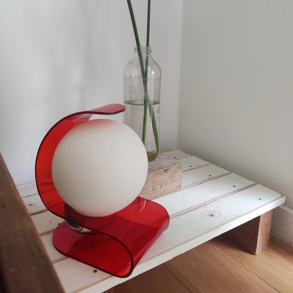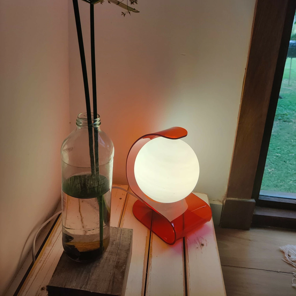 El proceso de crear esta lampara fue un camino largo de prueba y error de moldiado del acrilico. Nos inspiramos en el estilo futurista space age de los años 60's 70's.