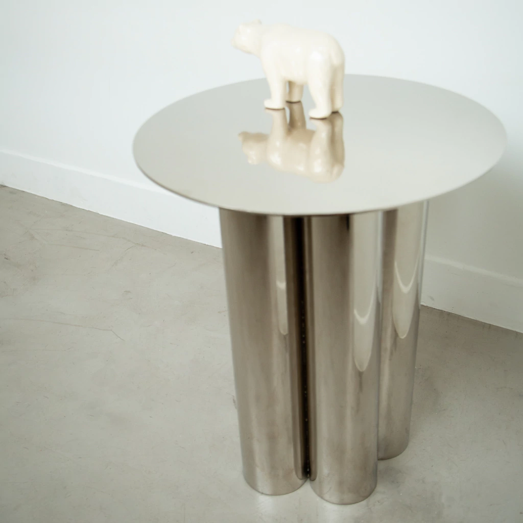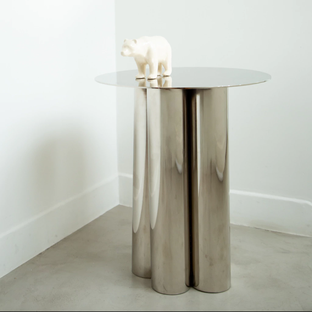 Para quienes buscan un toque extra de brillo, la mesa Loop también está disponible en versión cromada, con un acabado que refleja la luz y otorga un aire luminoso y contemporáneo.