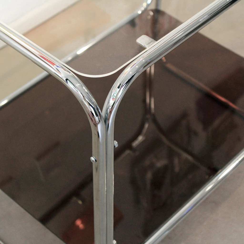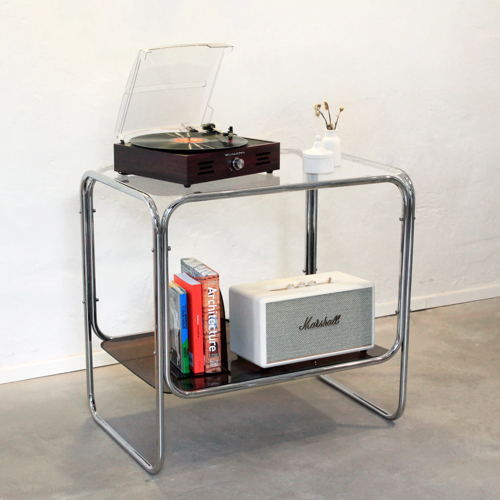 La Mesa Kromo es mucho más que un mueble: es un objeto de diseño pensado para darle carácter y funcionalidad a tus espacios. Su estructura de tubos cromados crea un contraste elegante con los estantes de acrílico, disponibles en distintos colores para que puedas personalizarla según tu estilo.